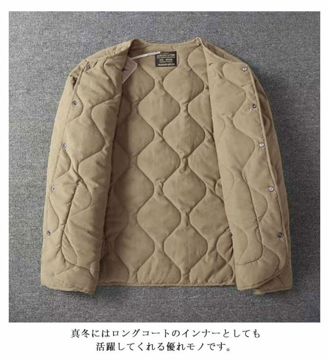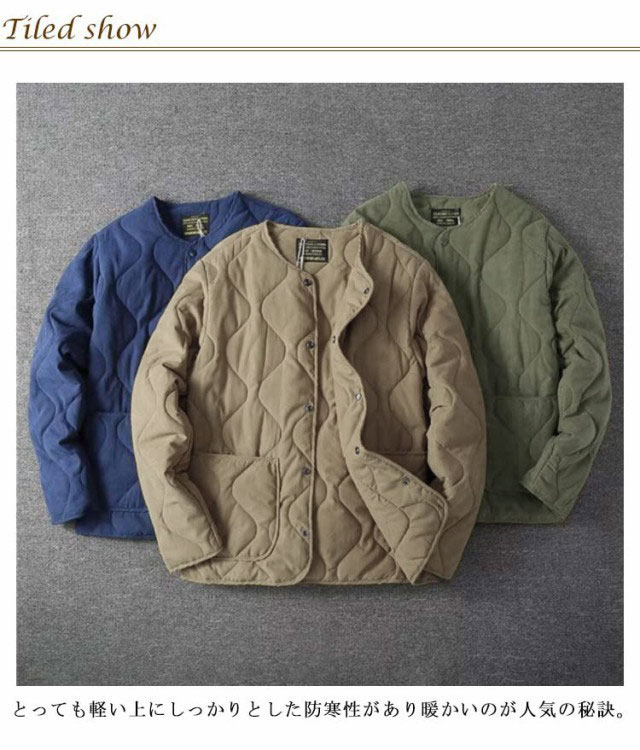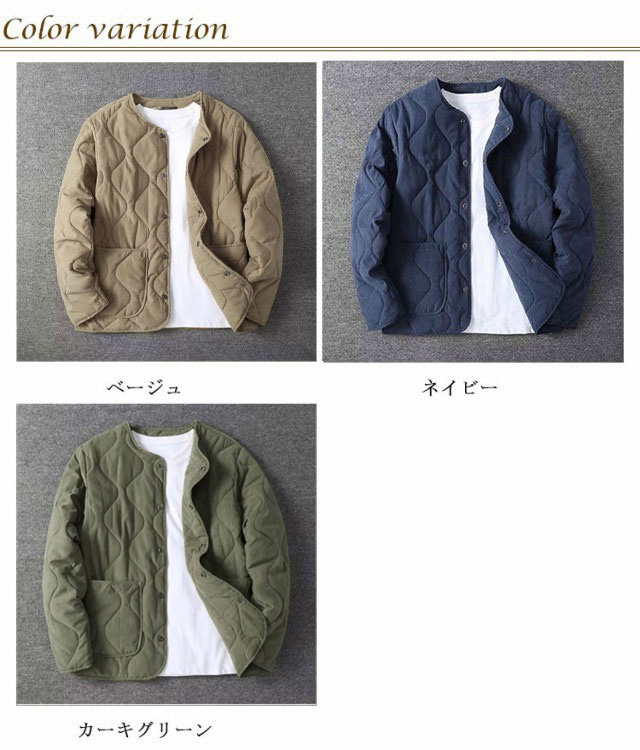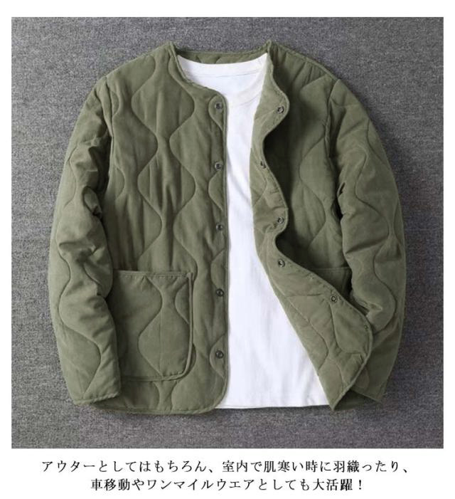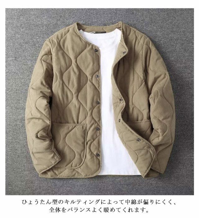 中綿 キルティング ノーカラーキルティングジャケット メンズ ノーカラージャケット キルティングライナー 長袖 ライナージャケット ノーカラーキルティングジャケット ジャケット アウター 上着 ライトアウター 防寒 保温 体型カバー ゆったり
