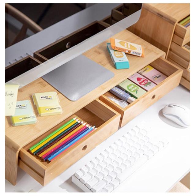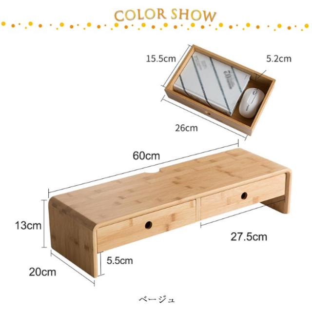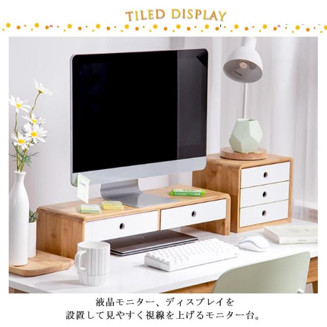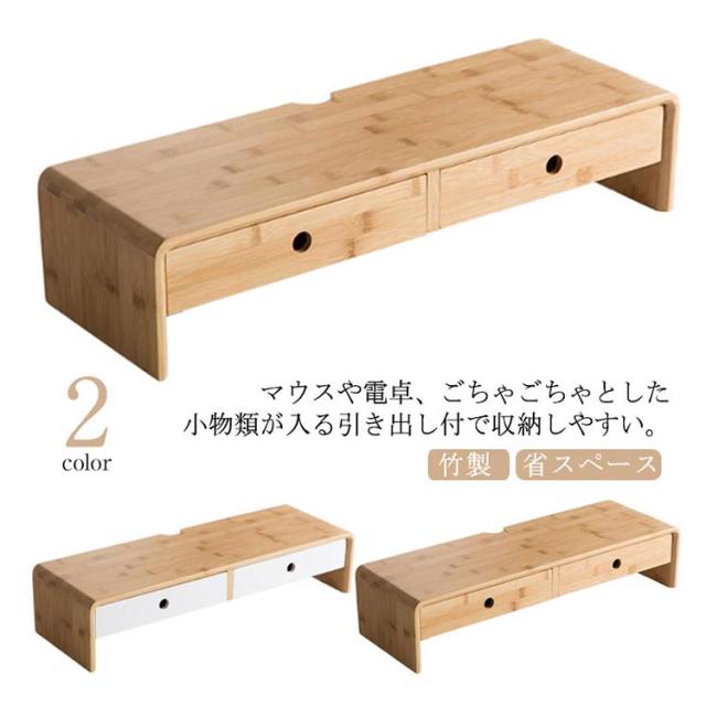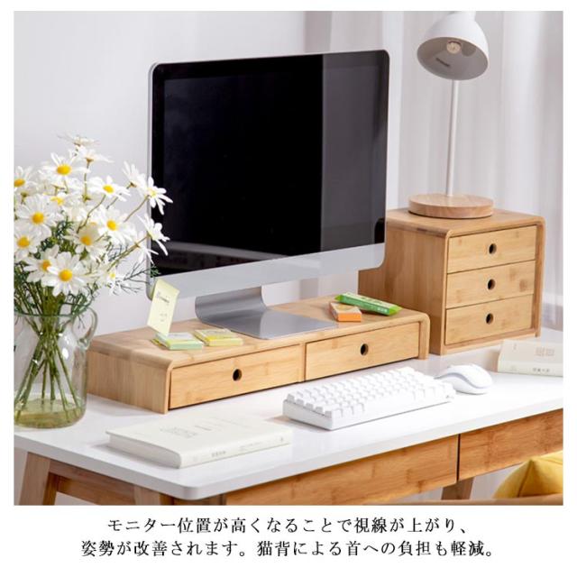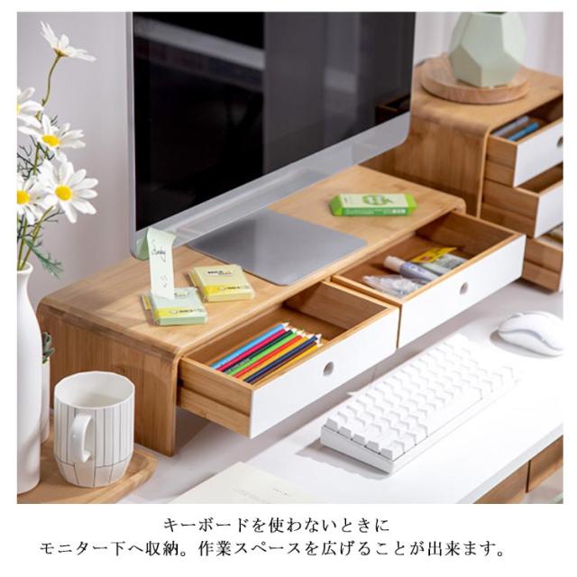 引出 ディスプレイ台 卓上 机上台 机上台 モニタースタンド モニターラック PC台 ナチュラル シンプル デスク上スタンド 引出し付き モニター台 デスク上 液晶モニター台 竹製 卓上ラック 卓上台 ノートパソコン台 プリンター台 キーボード収納