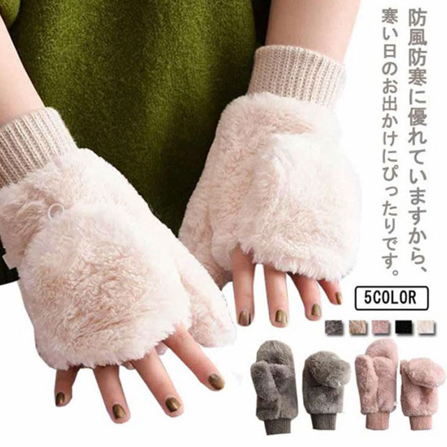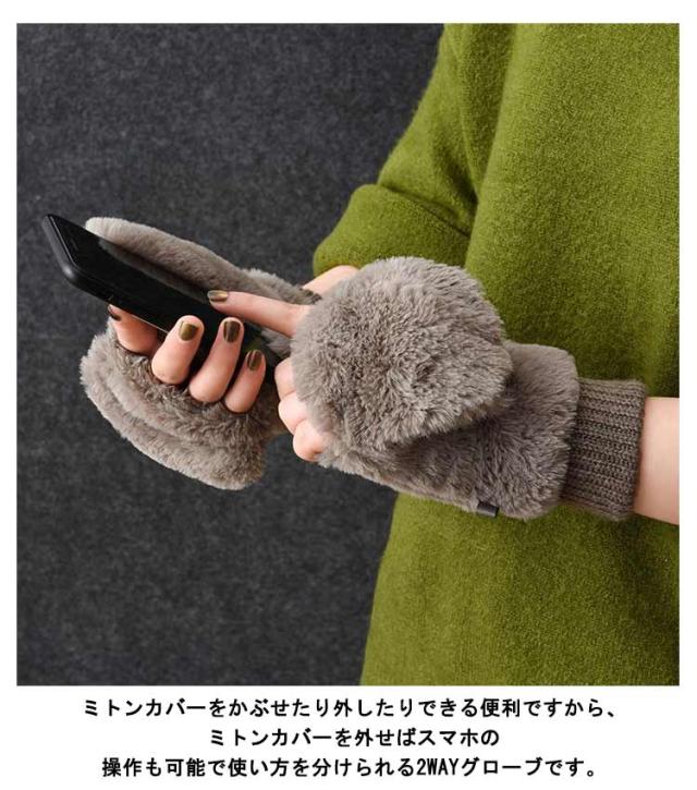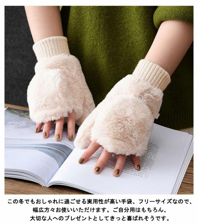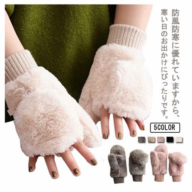 指なし 手袋 ファー ミトン グローブ もこもこ ハンドウォーマー ファー手袋 スマホ対応 暖か 指紋認証 あったか ファー手袋 裏起毛 防寒 スマホ レディース 指抜き ギフト 秋冬 女性 暖かい 自転車