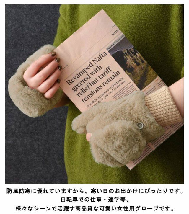 | 全面フェイクファーで暖かい、コットンとポリウレタンの混素材で伸縮性に優れ、表と裏は滑らかなファーで保温性、吸湿性も優れている、とっても暖かい、寒い冬の定番アイテムです。 ミトンカバーをかぶせたり外したりできる便利ですから、ミトンカバーを外せばスマホの操作も可能で使い方を分けられる2wayグローブです。 防風防寒に優れていますから、寒い日のお出かけにぴったりです。自転車での仕事・通学等、様々なシーンで活躍す高品質な可愛い女性用グローブです。 この冬でもおしゃれに過ごせる実用性が高い手袋、フリーサイズなので、幅広方々お使いいただけます。ご自分用はもちろん、大切な人へのプレゼントとしてきっと喜ばれそうです。 | |