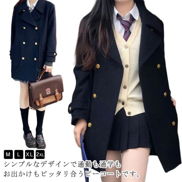 無地 トレンチコート コート 制服 通勤 学生 女子 Pコート レディース 制服 女子 通学 オフィス 制服 可愛い 高校生 中学生 スクールコート 学生服 ピーコート 厚手 ジャケット ピーコート あったか 暖かい アウター JK 体型カバー 軽い 春 秋 冬 送料無料 紺