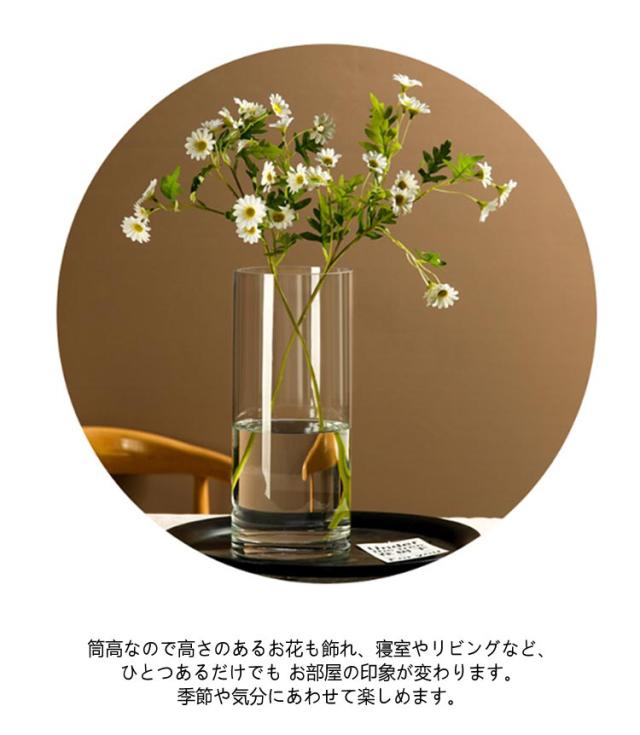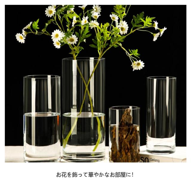 | 選べるサイズ!北欧スタイルのおしゃれガラス花瓶 フラワーベース お花を活けやすい筒型のフラワーベース。バランスがとりやすく、飾るときにテクニックがいらず、1本だけ入れても、複数の本数を入れてもおしゃれに飾れます。 筒高なので高さのあるお花も飾れ、寝室やリビングなど、ひとつあるだけでも お部屋の印象が変わります。季節や気分にあわせて楽しめます。 クリアガラスはお花を引き立て邪魔をすることは有りません。 カラーやバラ、ユリや枝物などを生けるにも適しています。 お花を飾って華やかなお部屋に! しっかり厚みがあり安定感あり。縦長の筒型は持ち運びやすく、水換えや移動もラクにできます。季節や気分にあわせて楽しめます。 | |