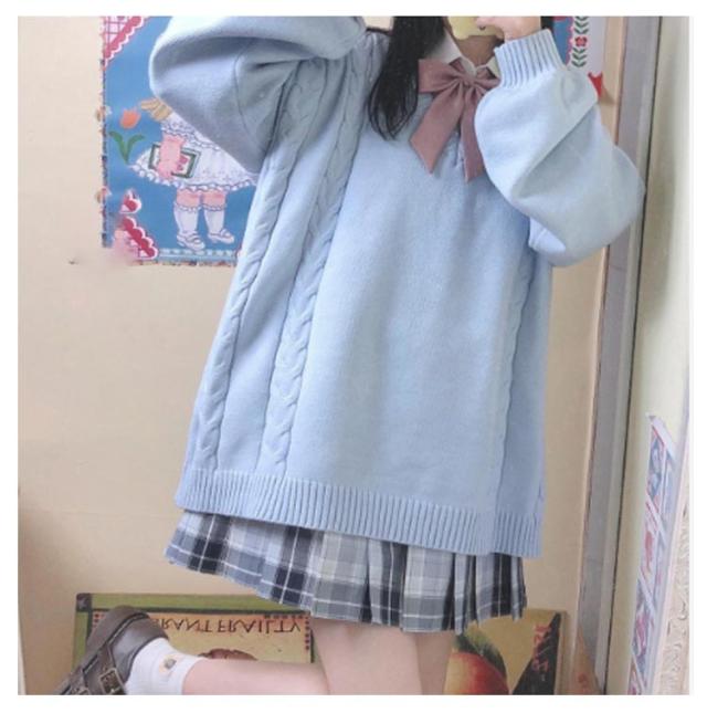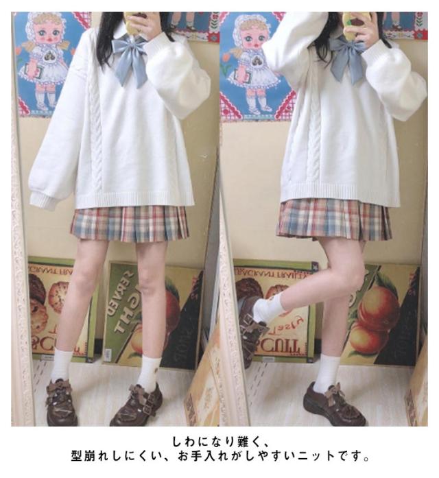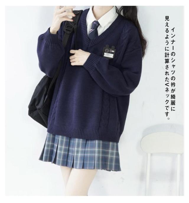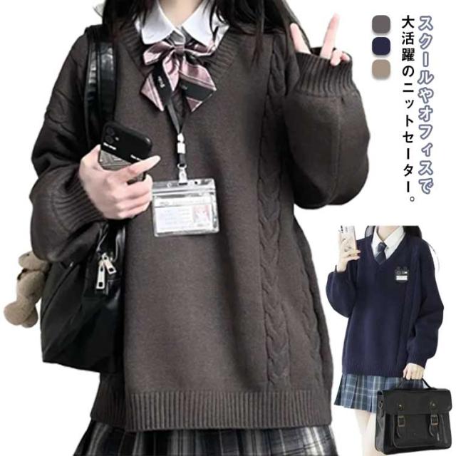通学 スクールセーター 学生服 セーター 暖かい ニットセーター Vネック JK制服 中学生 スクールセーター 女子制服 トップス ケーブル編み 高校生 学生服 ゆったり お洒落 大きいサイズ 無地 イベント 送料無料