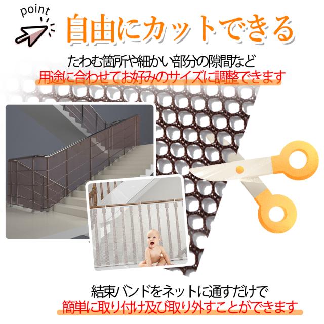 階段ネットフェンスネット安全ネット階段網防護ネット転落防止0.5cm網穴 取り付けバンド付きカット可能DIY脱走防止 5個入り