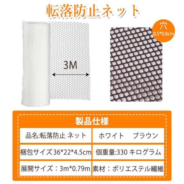 品名:転落防止 ネット、サイズ:0.5cm穴、カラー:ホワイト/ブラウン、取り付けバンド付き、材質はポリエステル繊維,ニーロン、PEプラスチックでできており、(安全ネットはエコで無汚染で人間の健康に無害の材質を採用し、)子供やペットのを階段やフェンスなどの高所から落下を有効に防ぐプラスチック素材のネット、外観から見れば、高密度設計を採用し、より綺麗です。