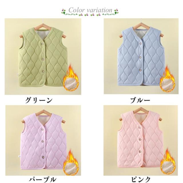 無地 トップス コットン 防寒 キルティング 無地 暖かい ベスト キッズ服 裏起毛 赤ちゃん 子供服 厚手 配色 コート ベスト 上着 秋冬 女の子 男の子 通園 通学 小学校