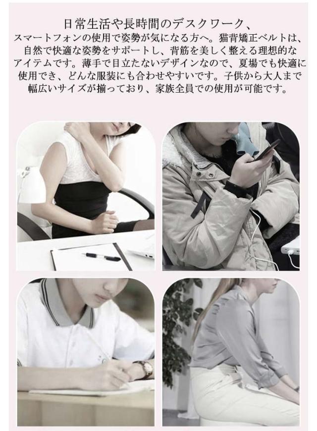 | 日常生活や長時間のデスクワーク、スマートフォンの使用で姿勢が気になる方へ。猫背矯正ベルトは、自然で快適な姿勢をサポートし、背筋を美しく整える理想的なアイテムです。薄手で目立たないデザインなので、夏場でも快適に使用でき、どんな服装にも合わせやすいです。子供から大人まで幅広いサイズが揃っており、家族全員での使用が可能です。 特徴: 【猫背矯正 & 姿勢改善:】背筋を自然に伸ばし、肩の位置を正しく保つことで猫背や巻き肩を効果的に矯正します。姿勢を改善することで、体のバランスが整い、健康的なライフスタイルをサポートします。 【通気性抜群: 】高通気性のメッシュ素材を使用しており、長時間の着用でも蒸れずに快適。特に暑い時期や長時間のデスクワークに最適です。 【自由調整: 】ベルト部分は調整可能で、自分の体型や好みに合わせてフィット感を自在に調整できます。サイズ調整が簡単で、成長に合わせて長期間使用できます。 【脱着簡単:】 シンプルな設計で、誰でも簡単に着脱できます。初心者でも安心して使用でき、忙しい日常でも手間なく利用可能です。 【男女兼用・大きいサイズも対応:】 男性、女性、子供用のサイズがあり、家族全員で使える設計です。大きいサイズもご用意しており、幅広い体型に対応しています。 【脇の痛みを軽減: 】脇に負担がかからないよう配慮されたデザインで、長時間の着用でも脇が痛くなりにくいです。 【バストアップ効果:】 正しい姿勢をサポートすることで、自然なバストアップ効果も期待できます。 | |