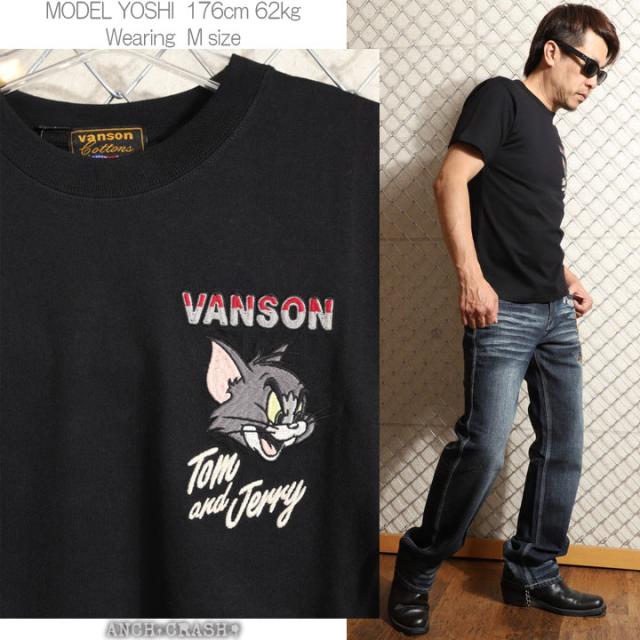 VANSON トムとジェリー コラボ 半袖Tシャツ (TJV-2523) 【送料無料】バンソン TOM AND JERRY 刺繍