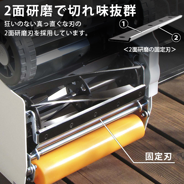 高回転モーターとリール式3枚刃採用で葉枯れがなく芝生にやさしい仕様になっています。 -
