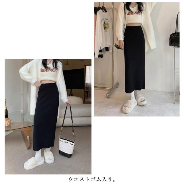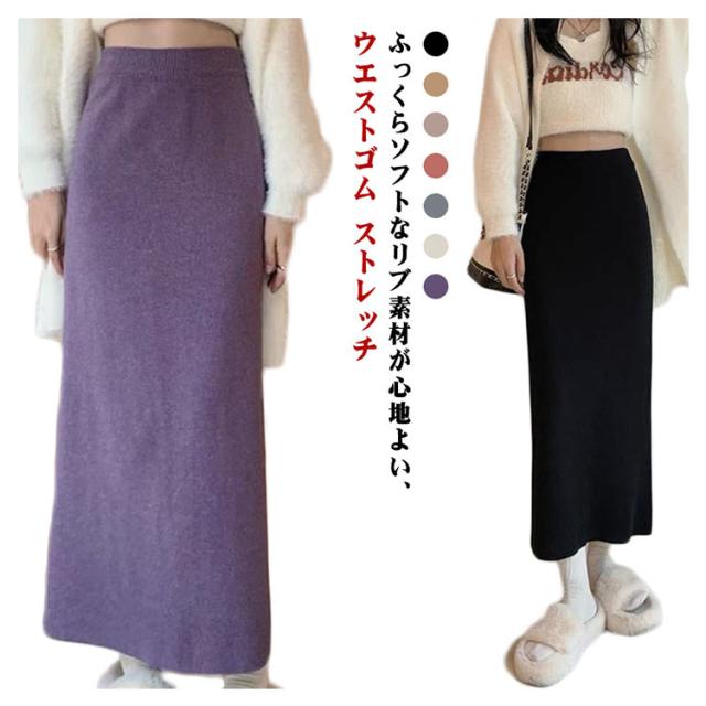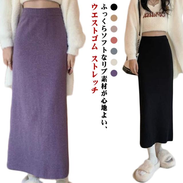 ロングスカート 春 スカート ウエストゴム ボトムス ロングスカート リブ ストレッチ ロング丈 マキシ丈 カジュアル レディース 秋 冬 ミモレ丈 スカート 無地