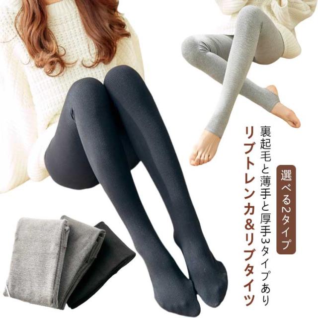 | 選べる2タイプ【リブトレンカ&リブタイツ】【裏起毛と薄手と厚手3タイプあり】 肌に心地よいのびやかな綿混のリブ素材を使ったレギンスです。 肌寒い日のコーディネートの強い味方のレギンスは保温性もあり、重宝すること間違いなしのアイテムです。 程よくフィットするサイズ感は、脚を綺麗に見せストレスフリーで着用できるのが嬉しいポイント。 プチプラなので何枚持っていてもOK! | |