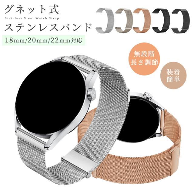 ステンレスメッシュ時計バンド ステンレスバンド 20mm 22mm 18mm スマートウォッチ バンド ステンレス メッシュ 着せ替え 通気性 メタル