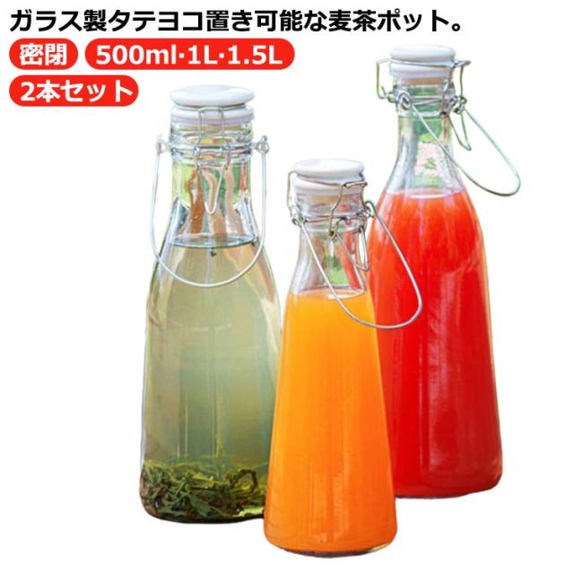 2本セット 1.5L ピッチャー スリム 冷水筒 お茶ポット お茶ボトル 縦横 大麦茶 1L 冷蔵庫 密閉 麦茶ポット ウォーターボトル 冷水ポット ガラス 大容量 洗いやすい おしゃれ 水出し 水差し 2本セット ジュース ドリンク 炭酸 梅酒 果実酒 ガラス瓶