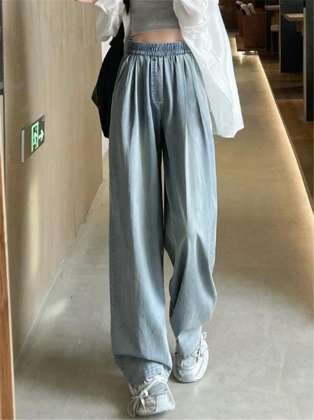 ワイドパンツ レディース ワイドデニム 涼感 デニムパンツ ひんやり 接触冷感 UVカット ジーンズ 着痩せ ウエストゴム ジーンズ ロング丈 ロング カジュアル ゆったり シンプル 20代 30代 40代 50代 60代 ロングパンツ ロング 膝下 ひざ下 ゆったり 大きめ 体型カバー 無地 脚長 個性的 着回し 大人 女性 ハイウエスト お洒落