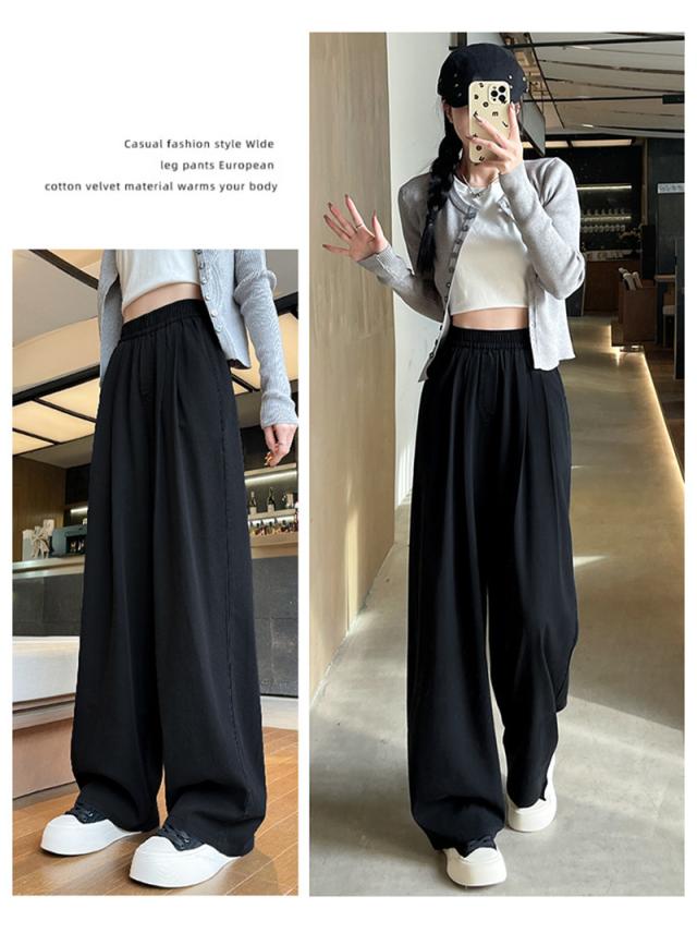 デニムライクながらも光沢ある上品な素材感が女性らしいワイドパンツ。