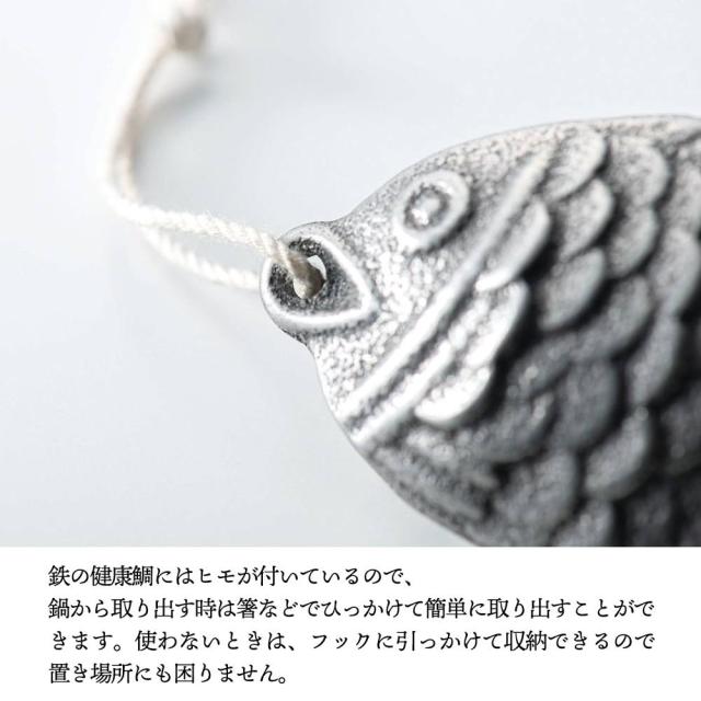 鉄の健康鯛にはヒモが付いているので、