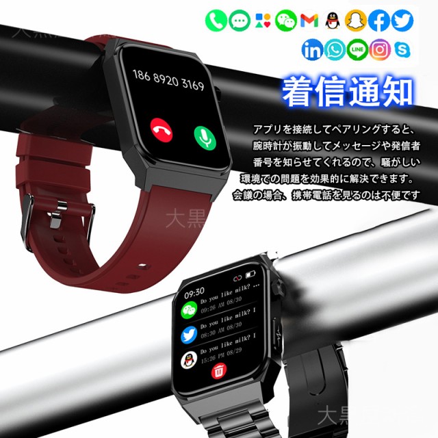 【便利な通知機能】- スマートウォッチをスマホに接続した後、着信をリマインダー、重要なSMSメッセージを受信して読めますように振動します。満員電車の中、運動中や打ち合わせ中などスマホを取り出せない状況でも、大切なメッセージや着信を見逃しません。(Line、Twitter、Facebook(Meta)、Instagramなどをサポートします。)お休みモードも設定でき、寝る前に「振動」「メッセージ通知」をオフすることができます。(ご注意:電話をかけるや返信などの機能がいただけません)