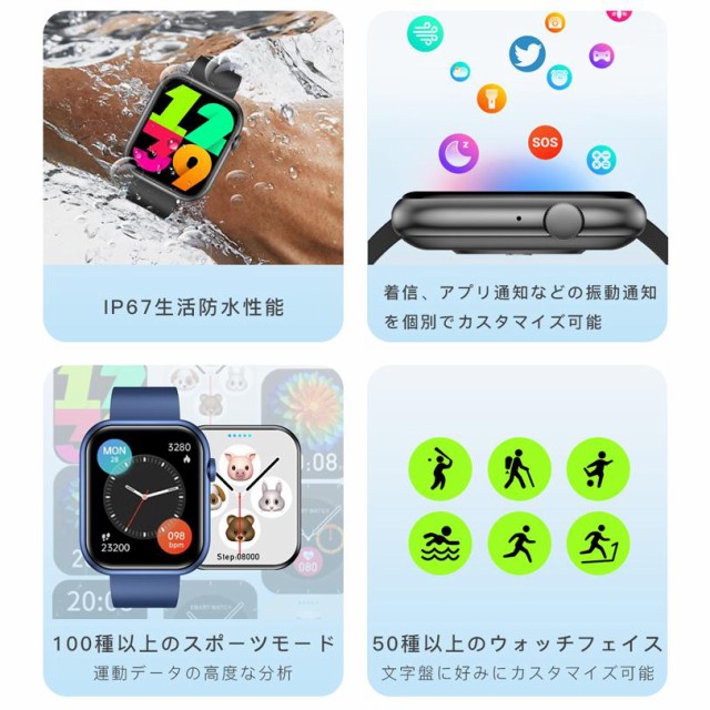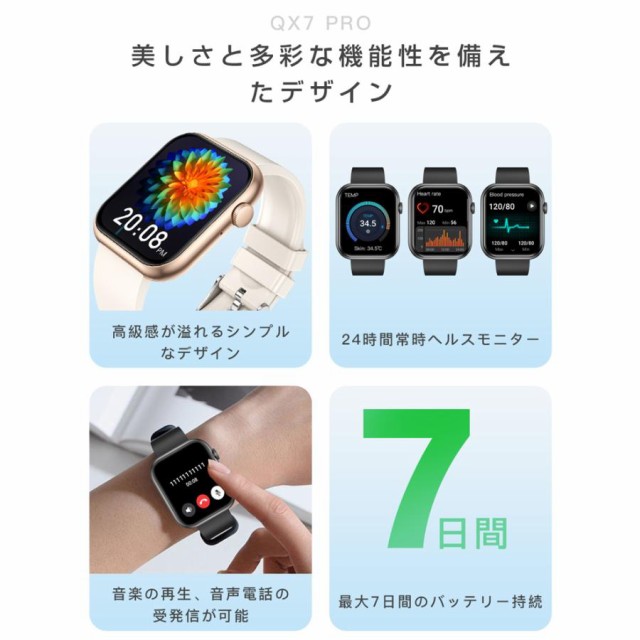 スマートウォッチ 通話機能 血糖値 血圧測定 日本語説明書 血中酸素 体温 心拍数 睡眠モニタ 日本製センサー 歩数計 着信通知