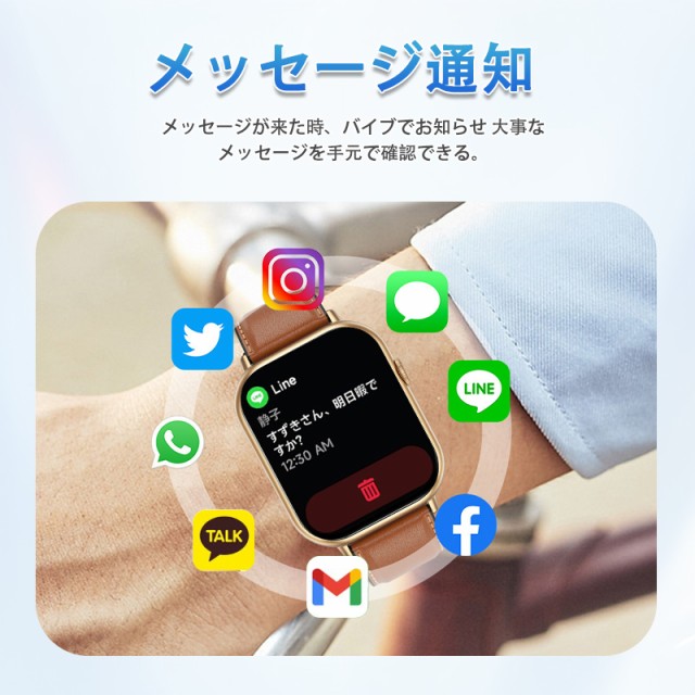 このスマートウオッチはスマホと接続してから、着信通知やメール通知だけでなく、LINE,Twitter,Instagram、Facebook、Whatsapp等受信できます。