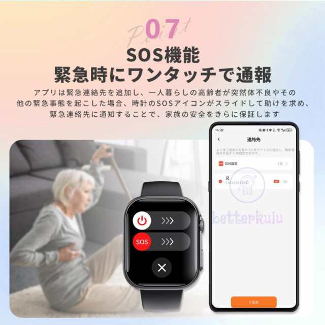 関連機能ド:スポーツウォッチ スマホウォッチ 2023 日本製 運動モード 歩数計 腕時計 Bluetooth通話 bluetooth sos SOS機能 SOS機能付き 呼吸訓練 睡眠改善 1.96インチ大画面 スマートブレスレット 日本語説明書 着信通知 電話拒否 睡眠検測 アラーム 振動 時計 腕 睡眠モニター スポーツ IP67防水 gps GPS連携 リストバンド ランニングウォッチ 母の日 誕生日 メンズ バレンタイン キッズ 子供 父 母 ギフト お歳暮 家庭用 呼吸 ランニングスマートウォッチ スマホ時計 大容量バッテリー スマート 健康 スマホ不要 国産 健康時計 替えバンド 革 ベルト 22mm android対応 運動 USB 音声通話 音楽再生 カロリー 子ども 子供 防水 睡