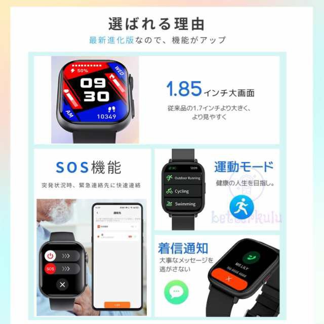 関連機能ド:スポーツウォッチ スマホウォッチ 2023 日本製 運動モード 歩数計 腕時計 Bluetooth通話 bluetooth sos SOS機能 SOS機能付き 呼吸訓練 睡眠改善 1.96インチ大画面 スマートブレスレット 日本語説明書 着信通知 電話拒否 睡眠検測 アラーム 振動 時計 腕 睡眠モニター スポーツ IP67防水 gps GPS連携 リストバンド ランニングウォッチ 母の日 誕生日 メンズ バレンタイン キッズ 子供 父 母 ギフト お歳暮 家庭用 呼吸 ランニングスマートウォッチ スマホ時計 大容量バッテリー スマート 健康 スマホ不要 国産 健康時計 替えバンド 革 ベルト 22mm android対応 運動 USB 音声通話 音楽再生 カロリー 子ども 子供 防水 睡眠測定 大画面