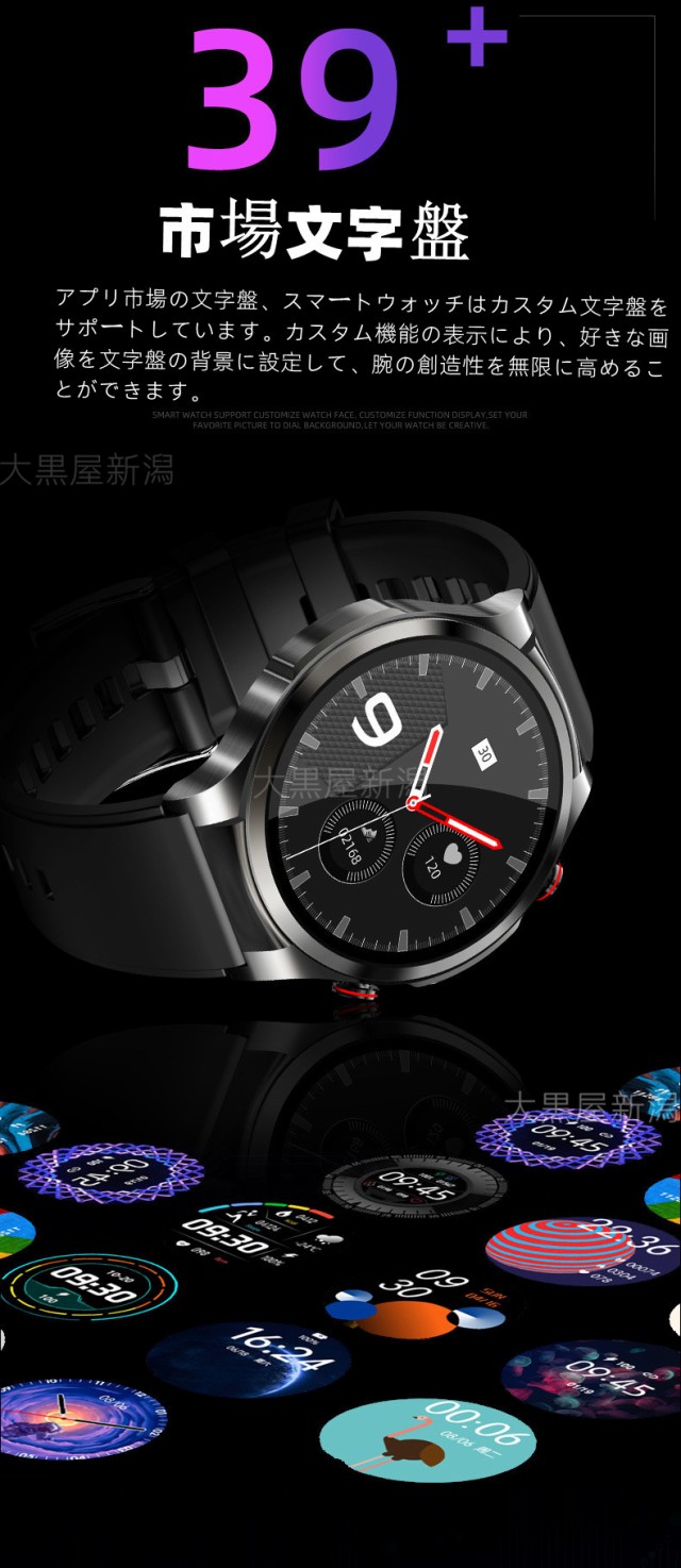 【DIY文字盤&多機能を搭載】- スマートウォッチの文字盤は固定ではありません。多くの文字盤から選べるだけではなく、お好みによって自分が好きな写真を文字盤に設定できます。 360* 360の高解像度と1.32インチのフルタッチスクリーンで、細かい文字でもはっきりと表示されます。他にも音楽コントロール、携帯を探す、腕上げ点灯、タイマー、ストップウォッチ、データ同期、女性生理管理など便利な機能を備えているので、男性でも女性でも使いやすいです!!生活、仕事の効率をさらに上げ、日常生活もより便利にしてくれます。