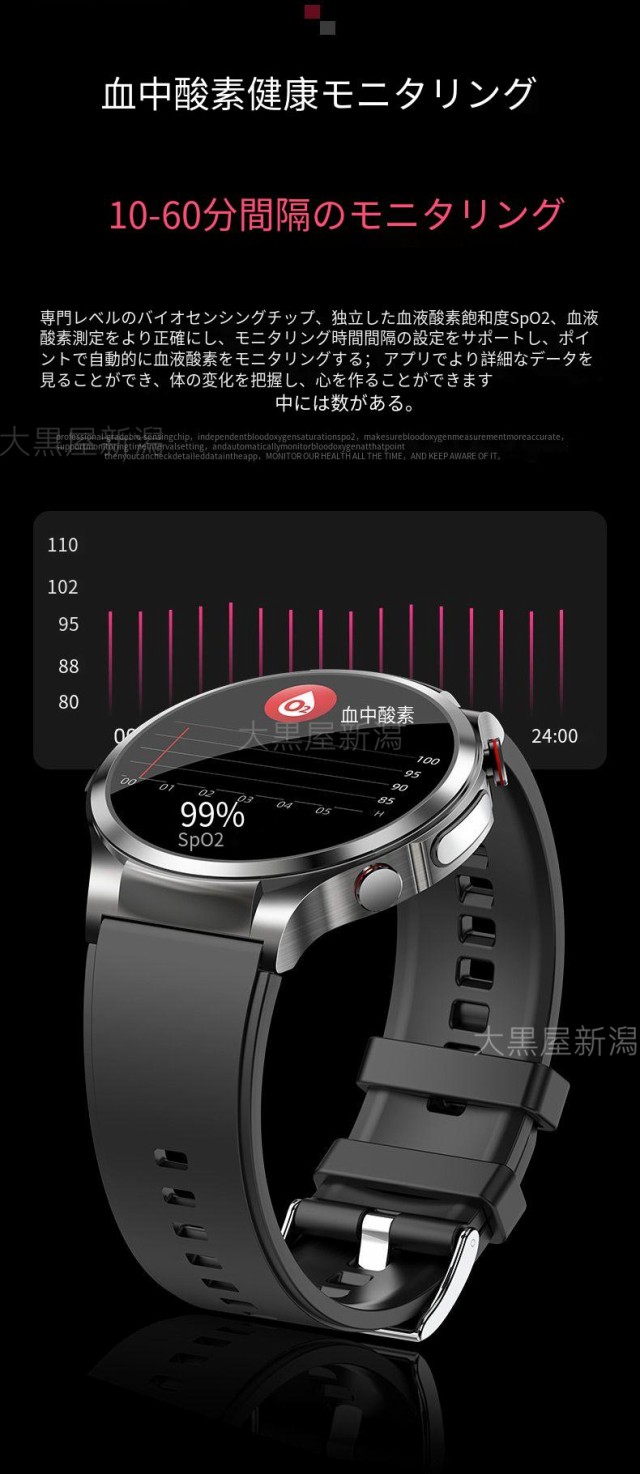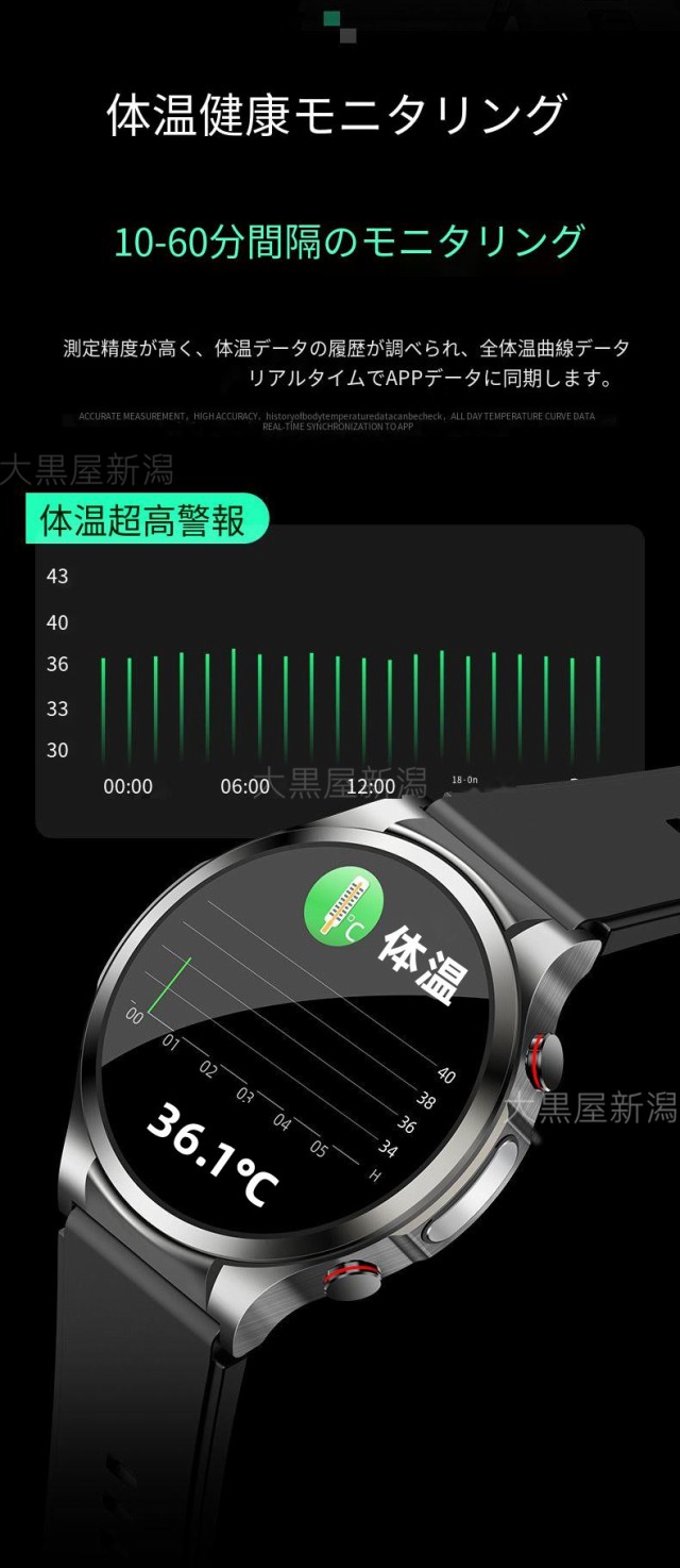 「非侵襲測定」スマートウォッチ 日本製センサー 医療レベル心電図 血糖値 血圧測定 血中酸素 体温測定 高精度心拍数 睡眠管理 活動量計 着信通知 運動記録特典品