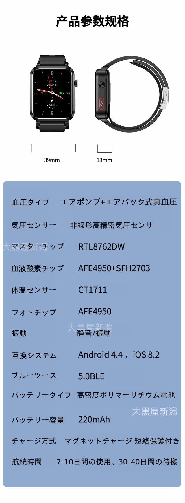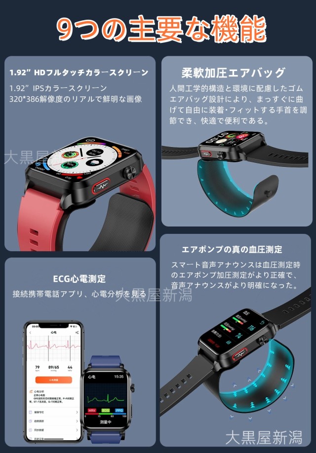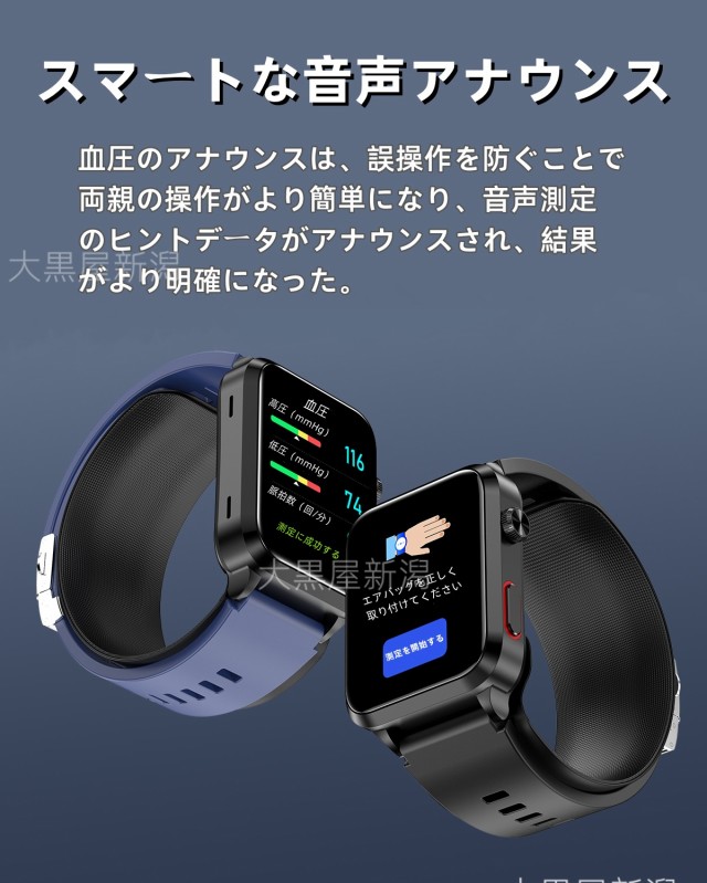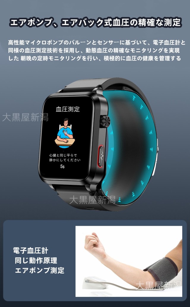 スマートウォッチ 日本製センサー エアバッグ付き 心電図ECG+PPG 血糖値 血圧測定 体温測定 24時間高精度心拍数 睡眠管理 歩数計 音楽・カメラ制御 プレゼント