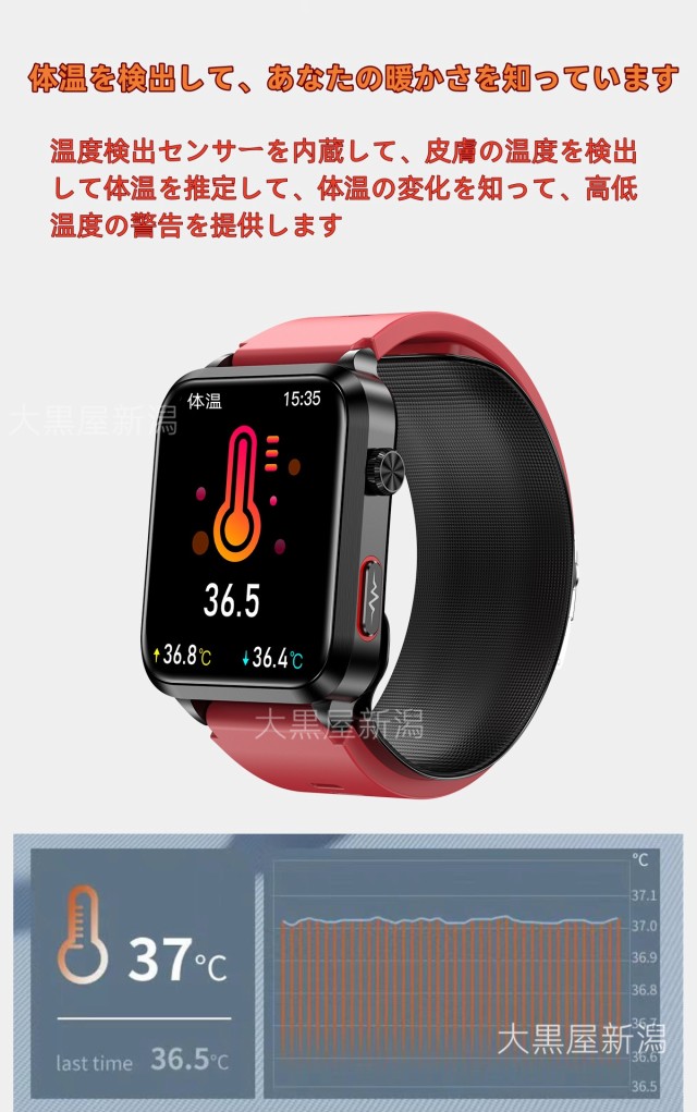 血糖値、体温、血中酸素、血圧や心拍数などの測定機能を一瞬で確認でき、スマホと同期した後アプリで健康状態データを一目で分かります。