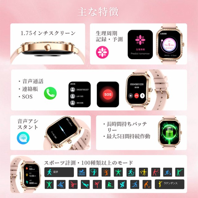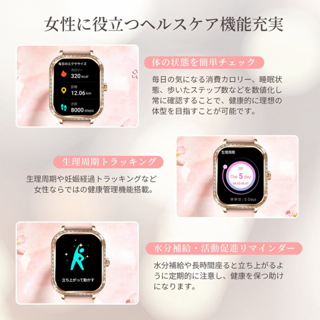 スマートウォッチ IP68防水 腕時計 音声通話 心拍 歩数 レディース 女性向け 誕生日 ギフト 着信通知 睡眠検測 生理周期 スポーツ計測 母の日