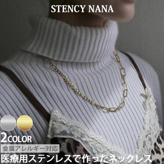金属アレルギー対応 ステンレスペンダントダブルデザインネックレスチェーン ステンレスネックレス 安心 316L ニッケルフリー ネックレスチェーン 小豆チェーン レディース スポーツ プール 汗をかいてもかぶれない カニカン