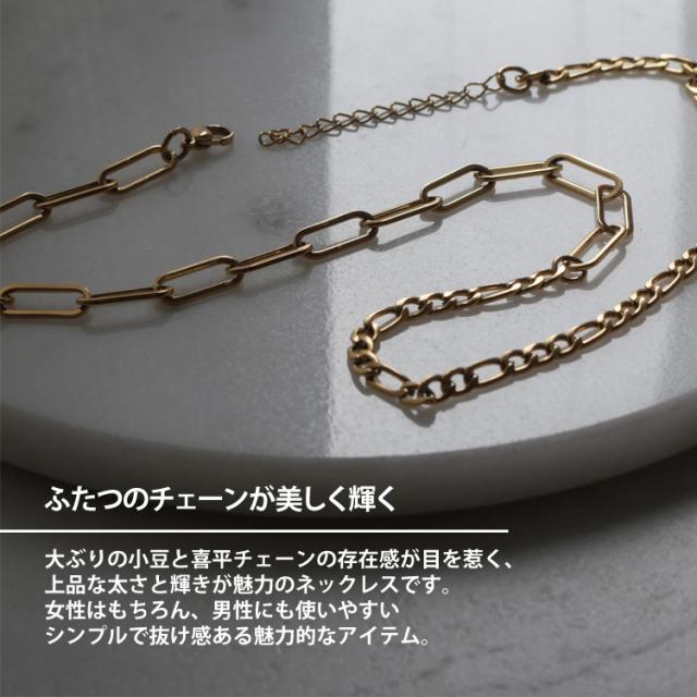 大ぶりの小豆と喜平チェーンの存在感が目を惹く、上品な太さと輝きが魅力のネックレスです。 女性はもちろん、男性も使いやすいシンプルで抜け感のある魅力的なアイテム。 素材には、金属アレルギーの方にも安心なサージカルステンレスを使用。 シルバーやホワイトゴールド、プラチナで金属アレルギーが出てしまう方にもオススメです。