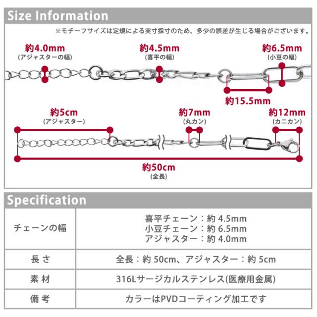 □チェーンの幅:喜平 約4.5mm、小豆 約6.5m