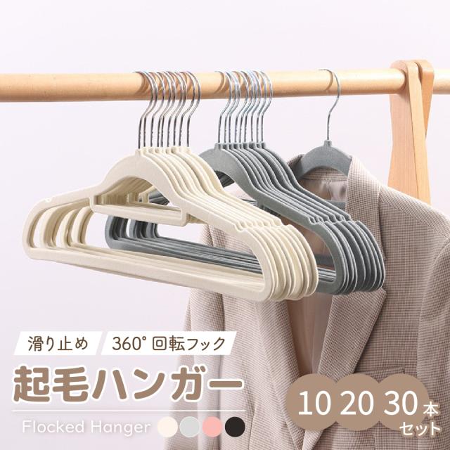 ハンガー 起毛ハンガー ハンガ 10本 滑り止め 滑りにくい 落ちない スカート マフラー 洋服 型崩れ防止 荷重が強い 耐荷重 跡がつかない 360°回転フック 省スペース 収納 洗濯物干し 乾湿両用 多機能 新生活