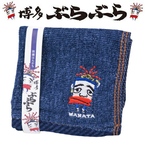 フォーカート 博多ぶらぶら 刺繍ハンカチタオル(博多銘菓 博多土産 福岡土産 家族 福岡 お土産 贈り物 博多 帰省 ギフト 博多織 紺色 ハンドタオル HAKATA 博多どんたく)