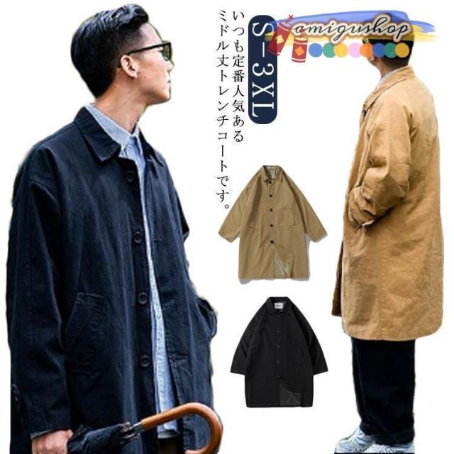 アウター スリム 無地 テーラード メンズ 春 ビジネスコート ステンカラーコート トレンチコート バルマカーン ビジネス オフィス カジュアル ロン