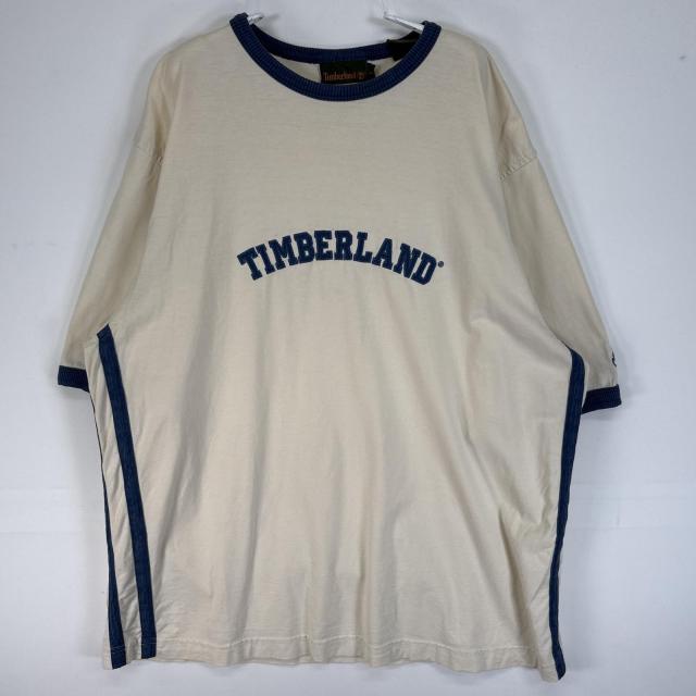 古着 00’s/00年代 ティンバーランド Timberland 半袖Tシャツ センター ロゴ 肉厚 クルーネック リンガー コーデュロイ L ベージュ