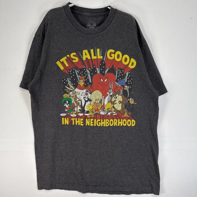 古着 ルーニーテューンズ Looney Tunes 半袖Tシャツ 大判 ラバープリント キャラクター クルーネック L グレー メンズ