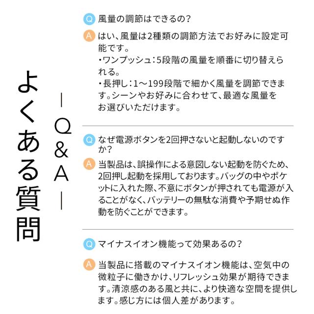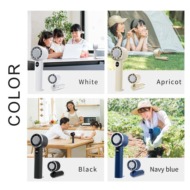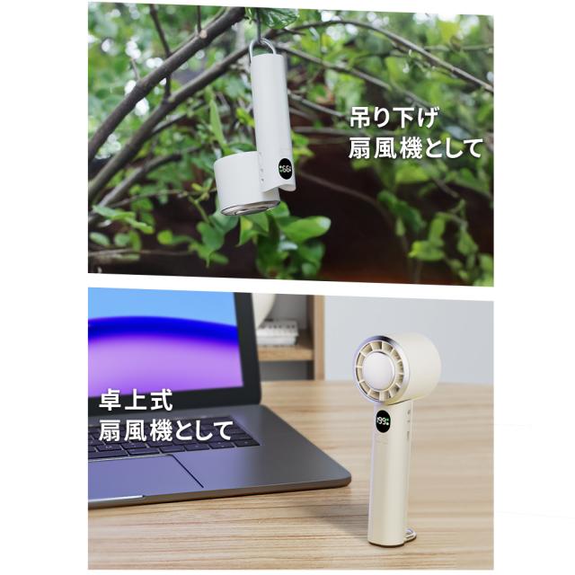 あらゆるシーンで、あなたの「涼しい!」を自由自在に実現する、まさに変幻自在のハンディファンです。手持ちでの使用はもちろん、デスクに置いて涼める卓上扇風機として。首に掛ければハンズフリーで涼しく、さらに様々な場所に吊り下げて使うことも可能です!