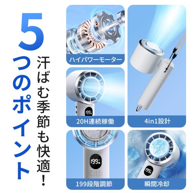 【2025超高速モーター搭載】携帯扇風機 冷却プレート付き ハンディファン 強力 1-199無段階風量調節 -22℃瞬間冷却 首掛け扇風機 ミニ 手持ち携帯ファン USB充電