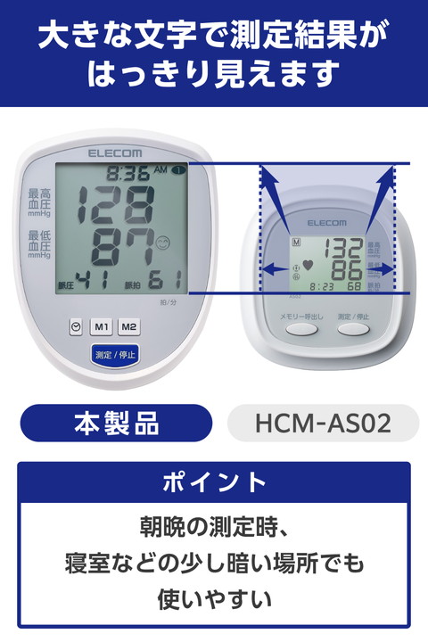 エレコム エクリア 上腕式 血圧計 デカ文字シリーズ アプリ入力対応 ホワイト ┃HCM-AS04WH