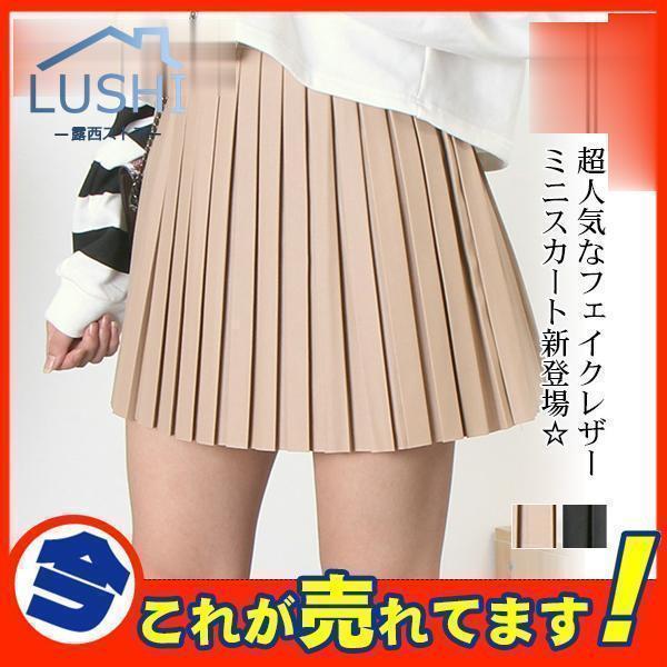 レザースカート レディース プリーツ ミニスカート PU Aライン ミニ丈 ハイウエスト おしゃれ ショート 合皮 フェイクレザー 革スカート
