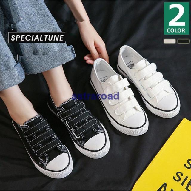 スニーカー レディース ローカット マジックテープ シンプル ベルクロ おしゃれ