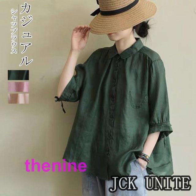 シャツ トップス レディース 折り襟 半袖 綿 麻 コットン リネン ボタン付き 大きめ ビッグシルエト カジュアル風 カジュアル シンプル オシャレ きれいめ 春 秋 夏 春用 秋用 春秋 30代 40代 20代 50代