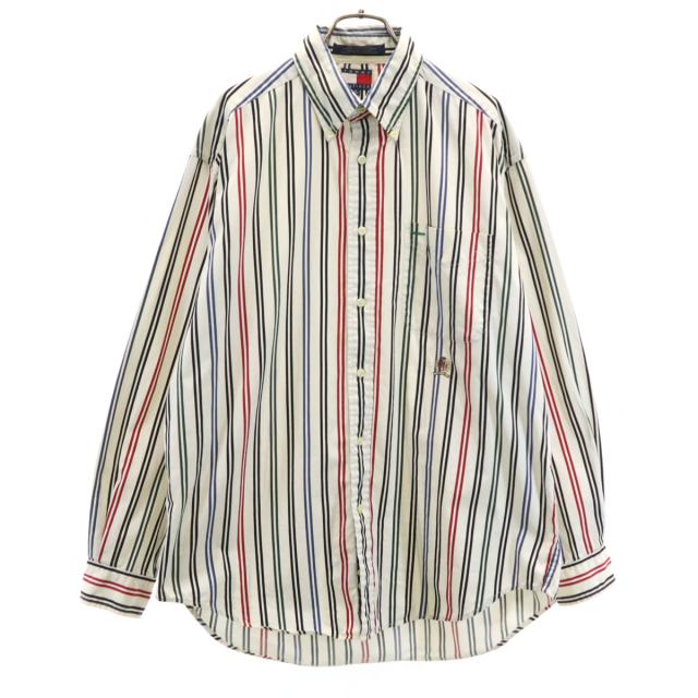 TOMMY HILFIGER トミーヒルフィガー ストライプ柄 長袖 ボタンダウンシャツ M ホワイト メンズ