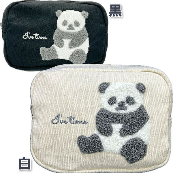 ふんわりとしたパイル生地で描かれたパンダが、大人の可愛らしさを引き立てる綿素材のポーチ。