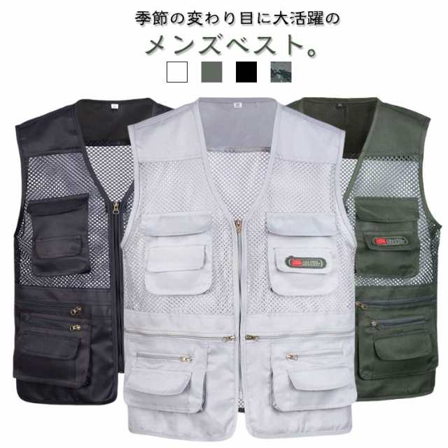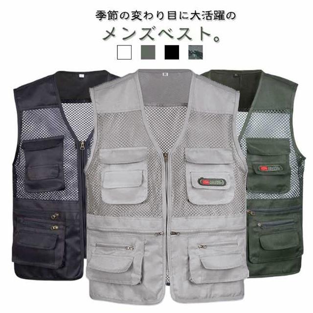 | 季節の変わり目に大活躍のメンズベスト。 オールシーズンタイプなので、どんな季節の登山、旅行、ハイキングやお釣りなどのアウトドアスポーツに重宝なベストです メッシュデザインですので、通気性をもっとアップし、暑い夏でも全然蒸し暑くないです。 シンプルなデザインで、丈夫と機能性に両立でき、またかっこ良さもいい、夏にはポロシャツの上に着るのは最適です。 通気性、速乾、防風性、着用も便利です。 登山、ランニング、キャンプ、サイクリング、ゴルフなど幅広い野外活動にお勧め | |