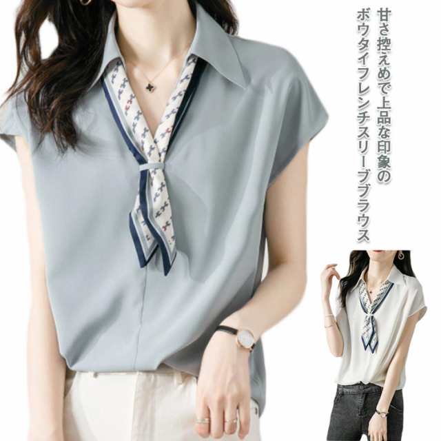 ボウタイ ブラウス 半袖 レディース トップス ボウタイブラウス 夏 夏ブラウス フレンチスリーブ フォーマル オフィス カジュアル ビジネス 母 ママ カジュアル 入学式 フォーマル 通勤 上品 シンプル きれいめ 送料無料