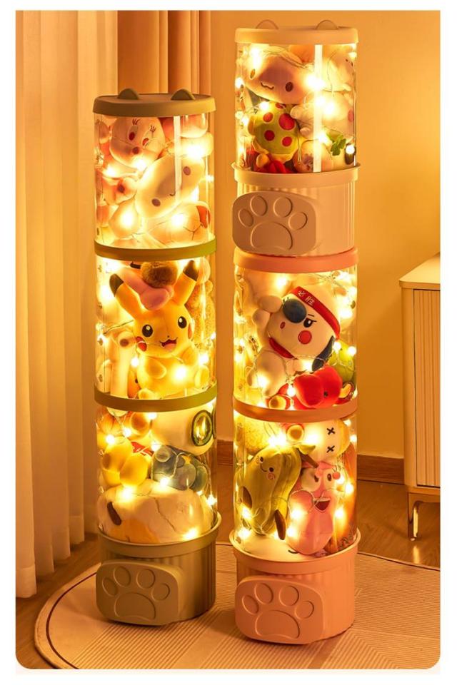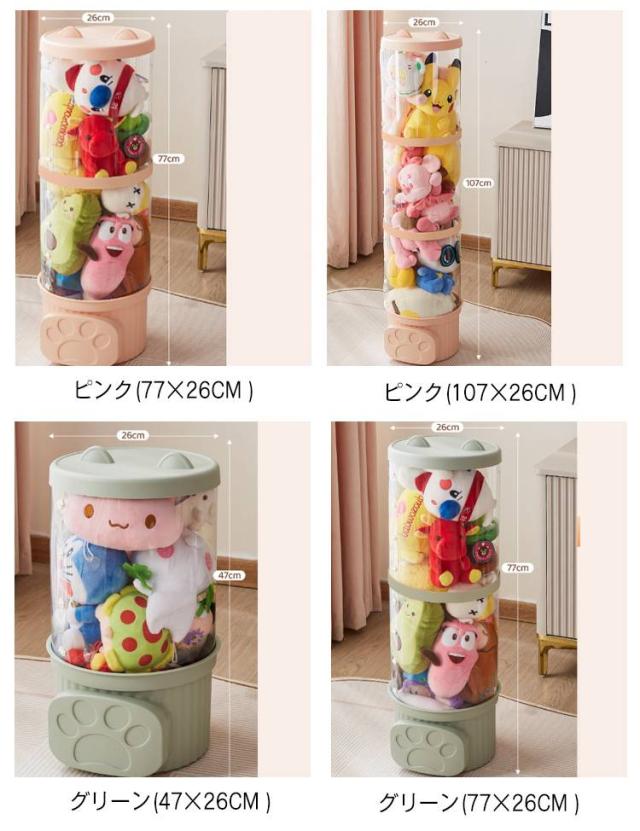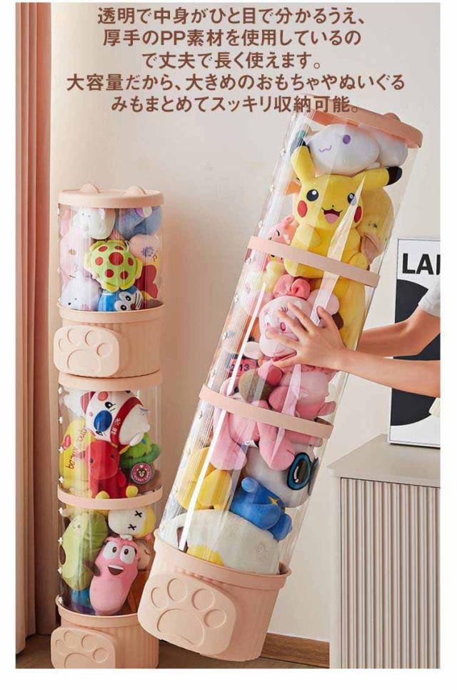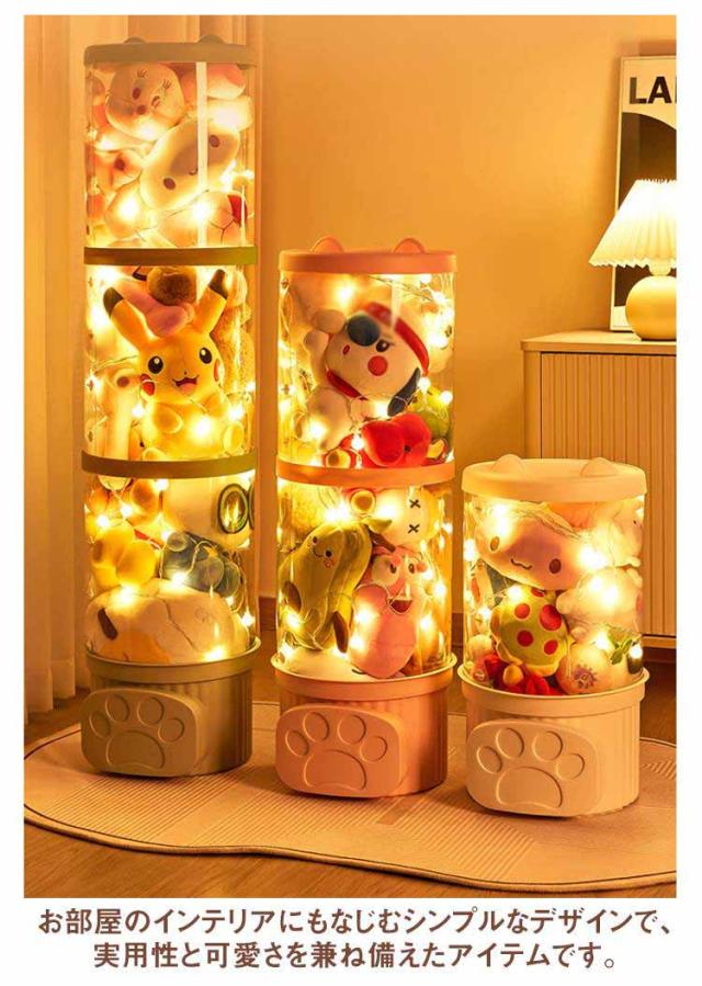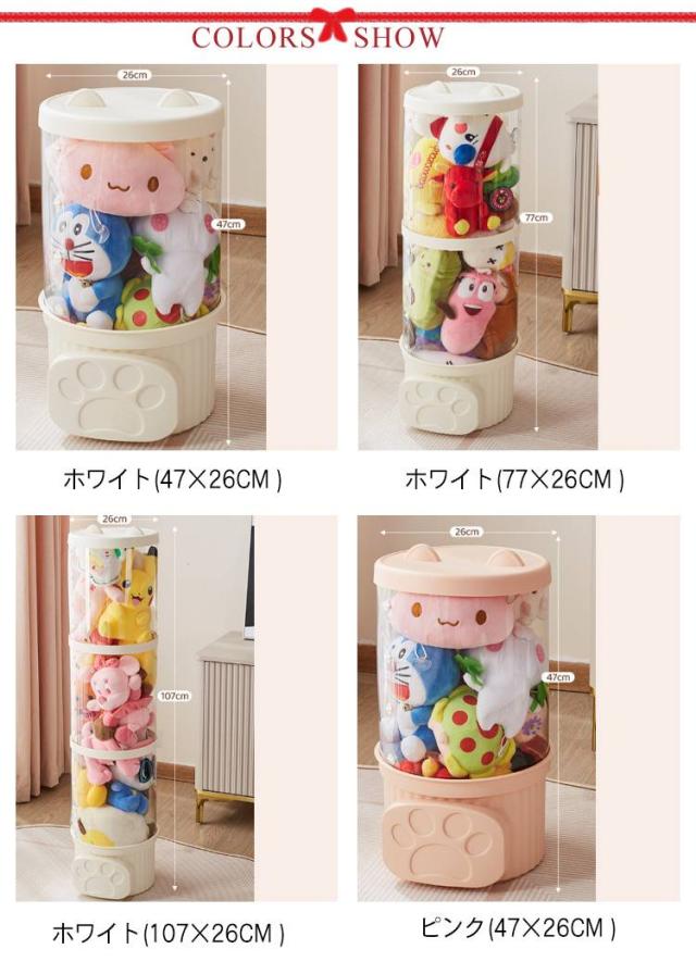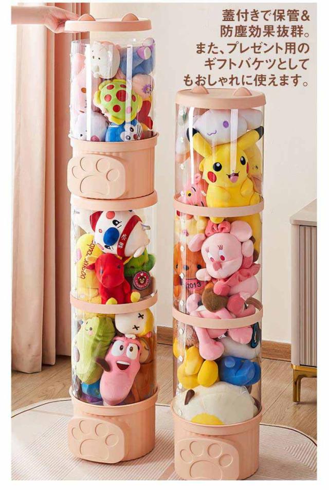 ギフトボックス ぬいぐるみ ぬいぐるみ収納 バケツ 大容量 クリア おもちゃ収納 ぬいぐるみ 円柱形 蓋付き 透明 収納ケース 展示ボックス 組み立て簡単 取り出しやすい 防塵 子供部屋 整理