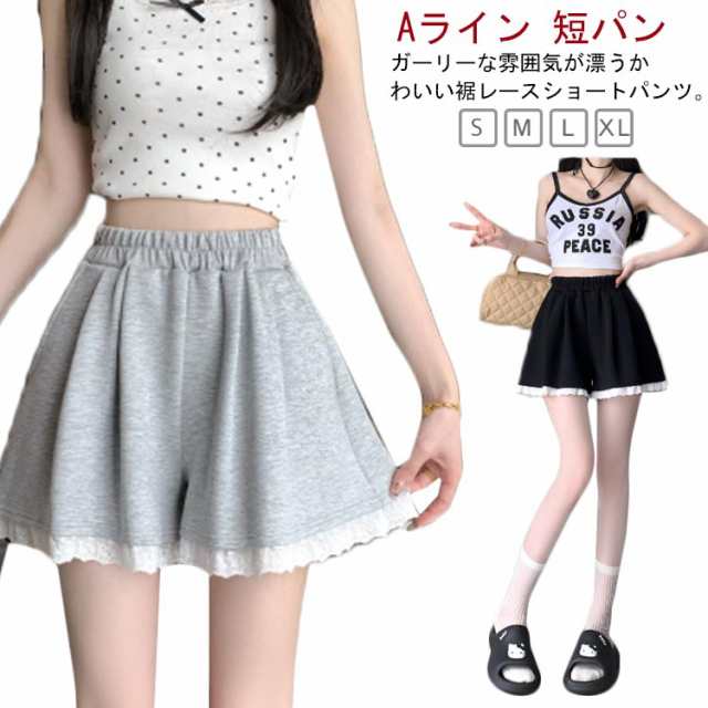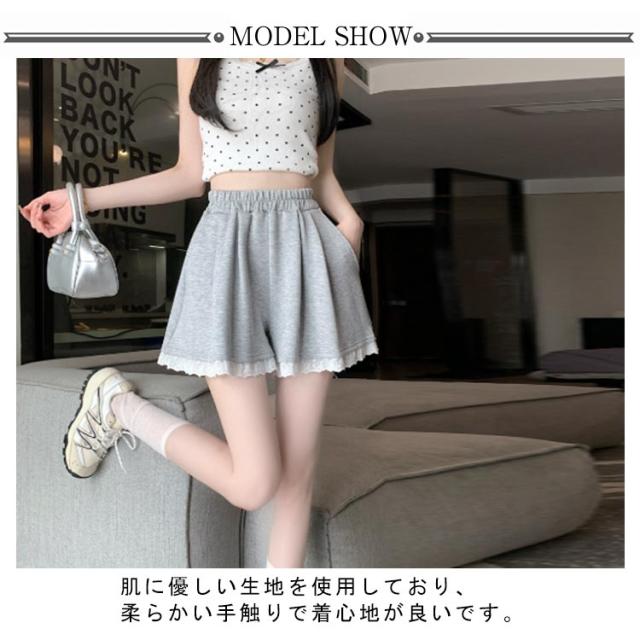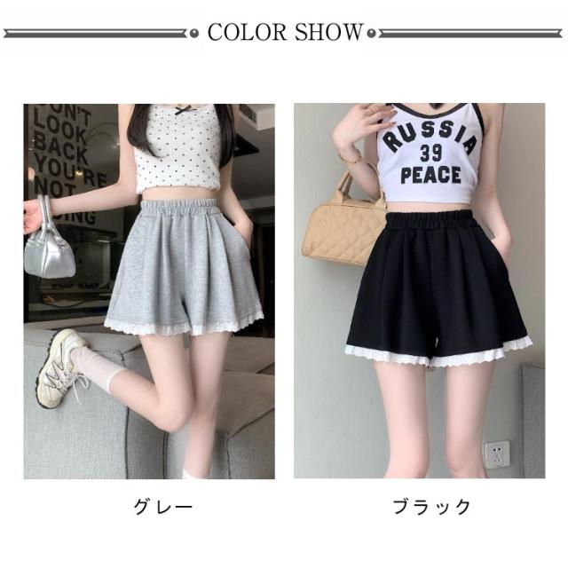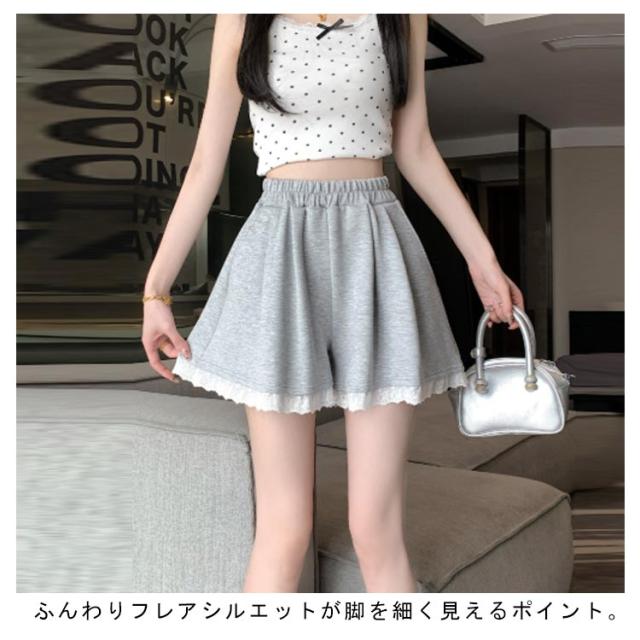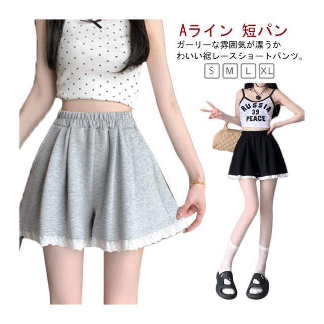 ガーリー ショートパンツ かわいい フレア 重ね着風 地雷系 Aライン 裾レース 短パン スウェットパンツ ショート丈 3分丈 韓国ファッション スエット ショートパンツ サマーパンツ
